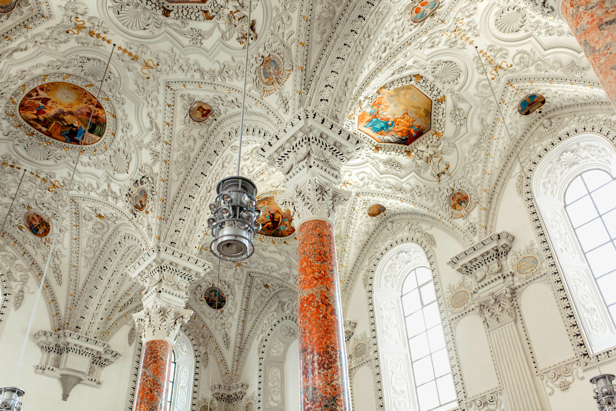 Ein grosser Teil der mittelalterlichen Altstadt hat den Krieg überstanden: zehn Tore und Türme, rund zwei Kilometer Stadtmauer und Gassen, die sich winden wie Linien einer alten Karte. Der Marktplatz – umrahmt vom Rathaus, der Grosszunft und dem Steuerhaus – ist das Herz der Stadt. Die Fassaden zeugen von den architektonischen Ausdrucksformen der Jahrhunderte, vom Spätmittelalter über den Barock bis hin zum Rokoko. Wer hier steht, merkt, dass Geschichte nicht stillsteht – sie verändert sich, aber sie bleibt. Die gotische Martinskirche mit ihrem über 500 Jahre alten Chorgestühl gehört zu den schönsten Sakralbauten Schwabens. Die Frauenkirche, vermutlich die älteste der Stadt, birgt Fresken des 15. Jahrhunderts und das Antoniterkloster ist die besterhaltene Anlage seiner Art weltweit. Dazwischen Bürgerhäuser mit barocken Palazzi, das Siebendächerhaus, der imposante barocke Kreuzherrnsaal des ehemaligen Klosters.