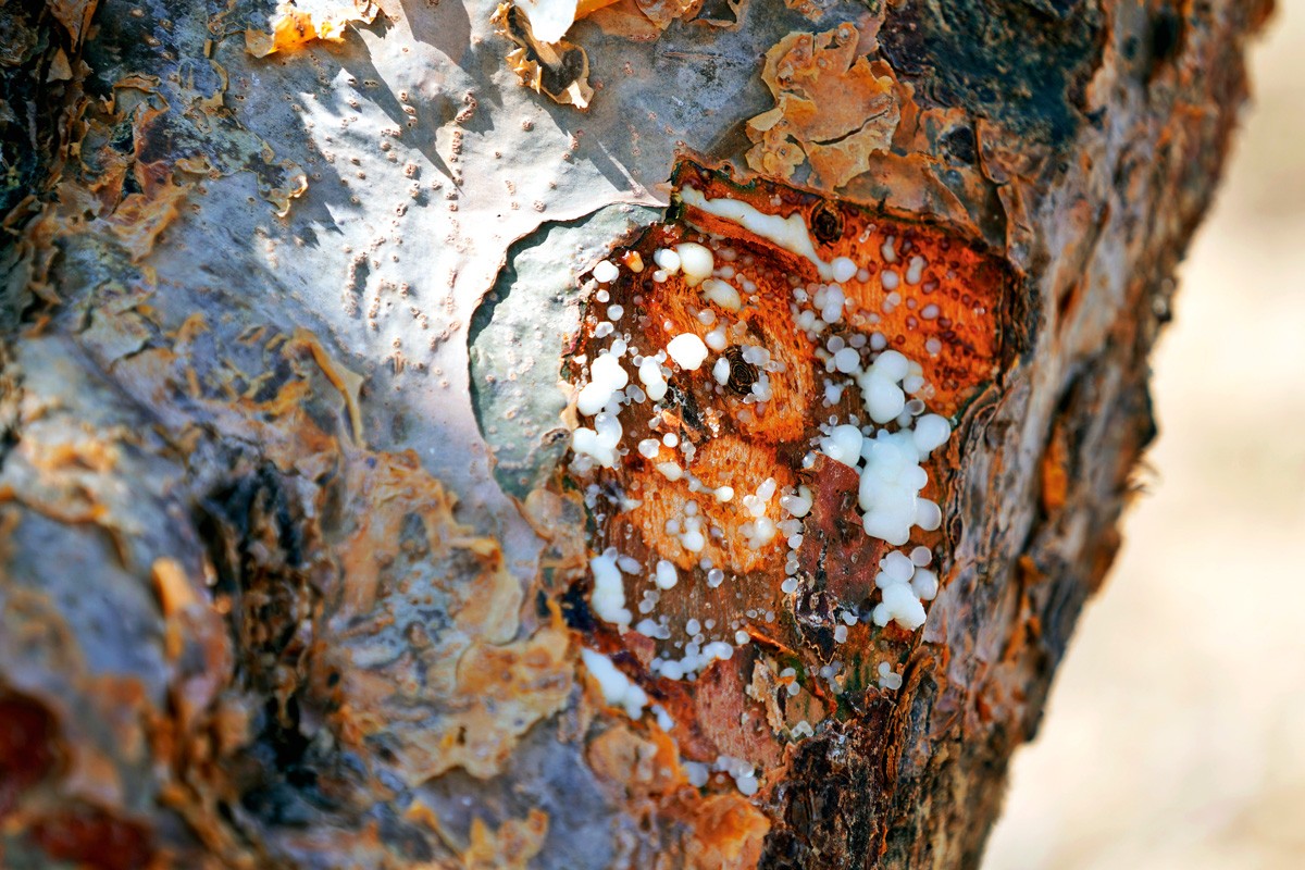 Auch ein anderer Naturschatz gedeiht in dieser Region, der einst wertvoller war als Gold: die Kristalle des Boswellia sacra. Die Weihrauchbäume, die sich hier zu Tausenden zum Himmel winden, sind teils über 3000 Jahre alt. Sie sind knorrige Zeugen des antiken und mittelalterlichen Handels, der Dhofar ungeahnten Reichtum bescherte. Schliesslich fand man hier heraus, dass die milchige, zähflüssige Substanz, welche der Baum durch Einritzen der Rinde absondert, in der Sonne zu bernsteinfarbenen Harztränen erstarrt.