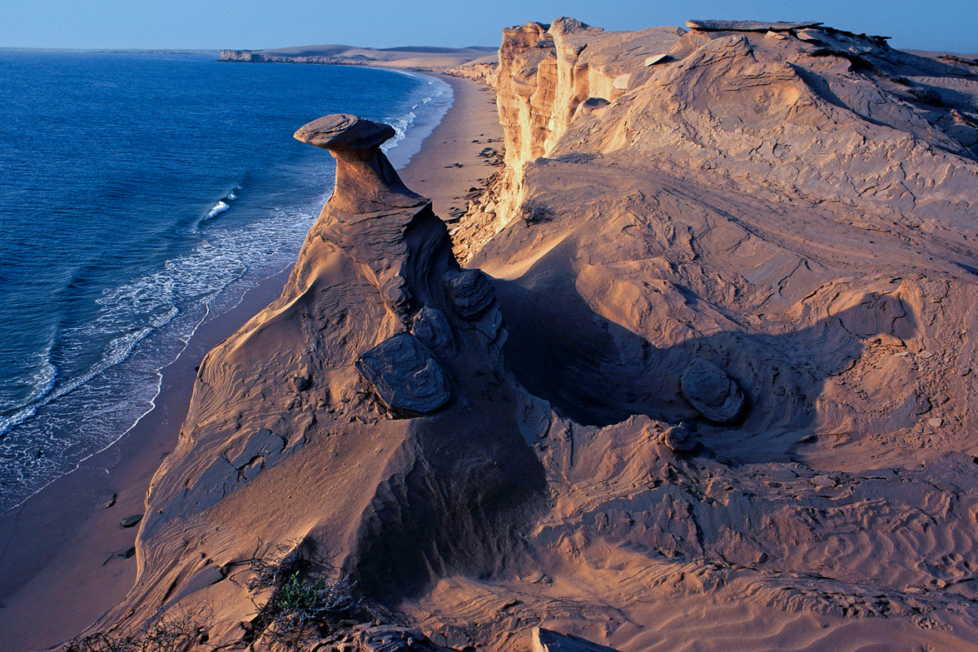 Ebenfalls zum UNESCO-Weltkulturerbe zählen das trockene Tal Wadi Dawkah, zusammen mit antiken Häfen und der sagenumwobenen Weihrauchstrasse in der Region Dhofar mit dem Hauptort Salalah, deren Küstenlandschaft die Kargheit anderer Gefilde krass kontrastiert. Hier, wo sich saisonal der Monsun ergiesst, «Khareef» genannt, verliert das Terrain seine steinerne Strenge und erscheint feuchter, fruchtbarer, fast schon tropisch – Dschungelgrün übertüncht das Wüstengelb, windschiefe Palmen säumen kilometerlange kokosraspelweisse Strände, auf Plantagen reift eine exotische Ernte von Bananen bis Papayas heran.