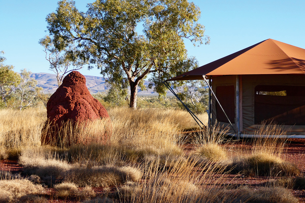 Weiter führt mich die Reise in den Karijini-Nationalpark mitten im Herzen des Outbacks. Die Landschaft hier beeindruckt mit tiefen Schluchten, kristallklaren Naturpools in leuchtendem Azurblau und roten Felsen, die steil ins Wasser fallen. Beim Wandern durch die Canyons der Dales Gorge tauche ich in die kühlen Fluten der Fern Pool ein, umgeben von Farnen und rauschenden Wasserfällen. Im Karijini-Eco-Retreat erlebe ich sowohl authentisches Camping als auch komfortables Glamping, fernab des Trubels der Welt. Die Zeit scheint hier langsamer zu vergehen, und der Tagesrhythmus richtet sich ganz nach dem Auf- und Untergang der Sonne. Meine Seele atmet auf.